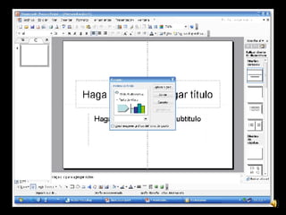 Este documento proporciona instrucciones para grabar una narración de voz en una presentación de diapositivas. Explica cómo configurar el micrófono, iniciar la grabación en la primera diapositiva o en otra seleccionada, leer el texto y cambiar de diapositiva mientras se graba, y hacer pausas y reanudar la grabación. También indica que la grabación se guarda automáticamente al terminar y permite guardar los intervalos entre diapositivas.