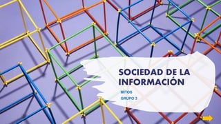 El documento discute varios mitos sobre la sociedad de la información. En particular, señala que las tecnologías no son neutrales ni asépticas, ya que transmiten valores de la cultura que las creó, y que su uso efectivo depende de cómo se integren en el currículum escolar en lugar de reemplazar al profesor. Además, aumentan el acceso a la información pero no garantizan su uso adecuado ni resultados educativos óptimos.