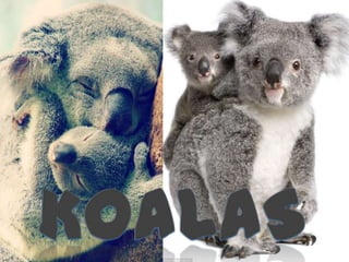 El documento habla sobre los koalas y los tres principales problemas que enfrentan: la cacería por su pelaje, la falta de alimento debido a la destrucción de su hábitat natural, y la destrucción general de su hábitat. Explica detalles sobre su reproducción, dieta, hábitats preferidos y su papel en la cadena alimenticia. Finalmente, destaca algunas características clave como su dependencia del eucalipto, vida en grupos, y el cuidado maternal de las crías recién nacidas.