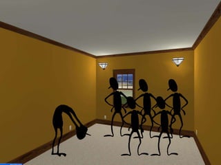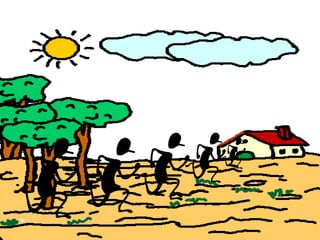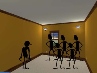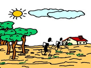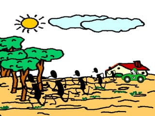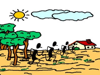 El documento describe una situación en la que un grupo de personas se reúne en una casa de campo para festejar. Se menciona que hay que pagar para estar allí y se observa la interacción entre los asistentes. El tono es informal y refleja un ambiente de celebración.