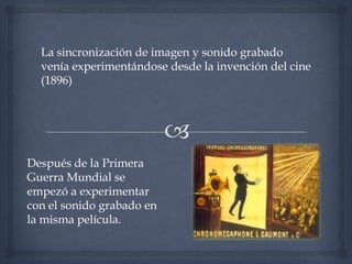 La sincronización de imagen y sonido ha sido un desafío desde los inicios del cine en 1896. Después de la Primera Guerra Mundial se experimentó con el sonido grabado en la película, pero la primera película exitosa con sonido fue Don Juan en 1926 usando un sistema de sonido sobre disco. La invención de sistemas de sonido sobre filme resolvió el problema de sincronización al grabar imagen y sonido juntos, aunque durante los primeros años del cine sonoro se estrenaron versiones mudas de películas habladas con resultados des