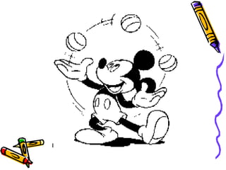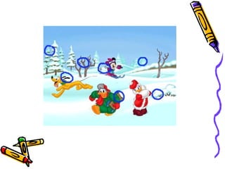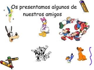 El documento presenta diferentes actividades educativas sobre temas como colores, números, letras, animales y medios de transporte a través de dibujos animados. Incluye juegos, canciones y cuentos para que los niños aprendan de una manera divertida.