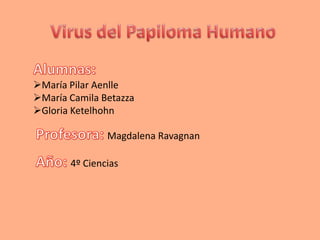 El HPV es un virus que se transmite sexualmente y puede causar verrugas genitales y cánceres como el cáncer cervical. Los factores de riesgo incluyen una edad joven, múltiples parejas sexuales, y parejas con múltiples parejas. El virus puede causar lesiones microscópicas y macroscópicas y afectar a hombres, mujeres y niños. La prevención incluye la vacunación, relaciones sexuales protegidas y controles médicos regulares. El tratamiento implica eliminar las lesiones a través de métodos