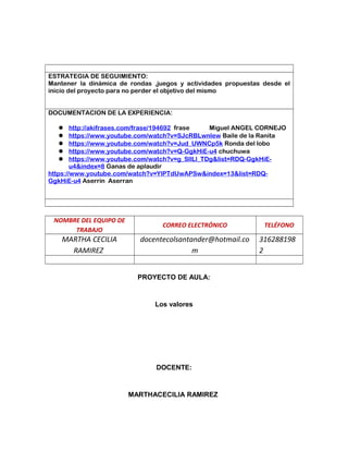 Este proyecto busca mejorar la convivencia escolar en un grado mediante el uso de las TIC para enseñar valores de manera divertida. Se identifica que los estudiantes han perdido buenos modales y normas de respeto, lo que afecta el ambiente escolar. El proyecto apunta a desarrollar valores como la solidaridad, tolerancia y respeto a través de juegos, cuentos y otras actividades interactivas usando las TIC, con el fin de estimular una sana convivencia entre los estudiantes.