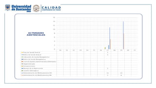 Este informe resume las actividades realizadas por estudiantes de enfermería de la Universidad de Santander en la Clínica Médica Duarte durante 10 semanas de prácticas. Los estudiantes atendieron 396 pacientes mujeres, realizando actividades asistenciales como control de signos vitales, administración de medicamentos y planes de atención, así como actividades educativas a pacientes y personal. La mayoría de pacientes tenían entre 12 y 59 años. Las patologías más frecuentes fueron hipertrofia uterina e infecciones de vías ur