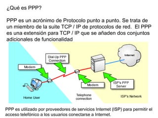 Este documento describe los protocolos PPPoE y PPPoA. PPPoE usa Ethernet para implementar una capa IP entre dos puertos Ethernet, mientras que PPPoA encapsula tramas PPP en AAL5 sobre ATM. Ambos protocolos ofrecen autenticación, cifrado y compresión, pero PPPoA evita algunos problemas de PPPoE relacionados con MTU y tiene ventajas para transmisiones. El documento también explica cómo funcionan estos protocolos para proveer acceso a Internet a usuarios residenciales y cómo los proveedores de