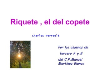 La historia de 'Riquete, el del copete' narra el nacimiento de un príncipe feo, Riquete, quien a pesar de su apariencia se convierte en un joven bondadoso y sabio. La princesa hermosa pero tonta y su hermana fea pero inteligente contrastan, destacando que el amor y la verdadera belleza se encuentran en el corazón. Finalmente, Riquete y la princesa se enamoran y se casan, subrayando que la verdadera hermosura reside en las cualidades interiores.