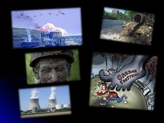 El carbón es una roca sedimentaria negra rica en carbono que se forma a partir de la acumulación y alteración de materia vegetal. Es un combustible fósil ampliamente utilizado como fuente de energía para generar electricidad y en procesos industriales como la producción de acero y cemento. Su uso genera contaminación ambiental debido a las emisiones de gases durante la combustión. Existen diferentes tipos de carbón según su contenido de carbono y las condiciones de formación, y se extrae principalmente a través de minas a cielo abierto o sub