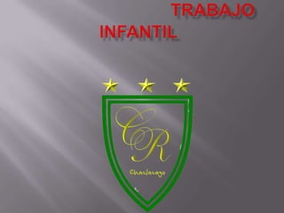 El documento define el trabajo infantil como cualquier trabajo que priva a los niños de su infancia, potencial y dignidad. Explica que el trabajo infantil es peligroso y perjudicial para el bienestar físico, mental y moral de los niños porque les impide asistir a la escuela y obtener una educación. Las principales causas del trabajo infantil son la pobreza familiar, la presión de los amigos, la negligencia de los padres y la orfandad.