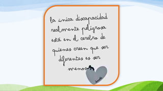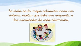 La educación inclusiva es un enfoque escolar que responde a las necesidades de cada alumno, valorando la diversidad humana. Requiere la colaboración de familias, escuelas e instituciones, y se basa en un paradigma educativo donde todos pueden aprender. Además, promueve valores como la igualdad, la solidaridad y el respeto, buscando eliminar barreras y garantizar oportunidades para todos.