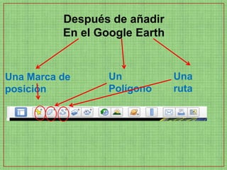 Google Earth permite guardar marcas de posición, polígonos y rutas en la barra lateral bajo la sección "Mis lugares". Al añadir diferentes datos al mapa, cada uno se guarda automáticamente en esta sección. De esta forma, el usuario puede revisar y evaluar fácilmente las tres actividades completadas por un alumno al solicitarle que añada una marca de posición.