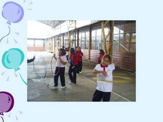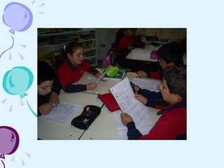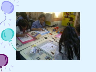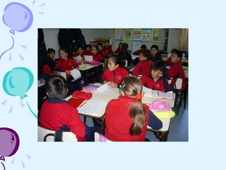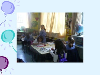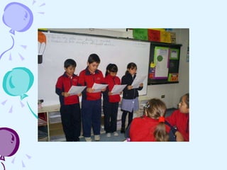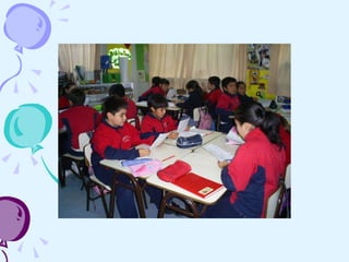 El documento presenta las primeras semanas de clases del curso 4o año A en su escuela. Describe las diferentes asignaturas como matemáticas, educación física, educación artística y lenguaje, así como las actividades realizadas en cada una. También presenta a los profesores del curso y menciona que este año deben enfrentar el desafío del SIMCE, por lo que piden ayuda a los estudiantes y padres para cumplir con esta meta.