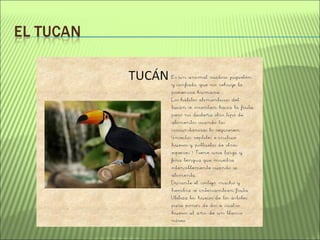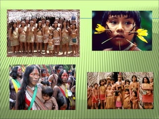 El documento describe la geografía y biodiversidad de la selva amazónica, incluyendo su ubicación en América del Sur y los diversos animales y plantas que la habitan. Se mencionan las tribus indígenas que viven en la región, así como sus medios de transporte y forma de vida. La selva se destaca por su abundante lluvia y su importante papel como 'pulmón del planeta'.