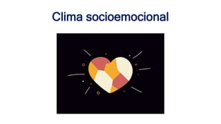 El documento trata sobre el clima socioemocional y el bienestar en el lugar de trabajo. Explica que el clima socioemocional se refiere a las percepciones, sentimientos y actitudes de los miembros de una comunidad sobre sus relaciones. También discute factores como la comunicación, el trato entre colegas, la colaboración y la resolución de conflictos. Además, aborda conceptos como el bienestar, la felicidad y factores que contribuyen a lograr un estado de florecimiento óptimo.