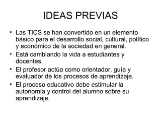 El documento describe las ventajas del uso de Internet para la educación, incluyendo facilitar la colaboración entre estudiantes, ofrecer mayores oportunidades de comunicación con profesores y mayor participación. Explica que la mayoría de estudiantes usan Internet principalmente para buscar material para trabajos y destaca que una función básica de Internet para la enseñanza es proporcionar información y comunicación. El objetivo es reflexionar sobre el papel de Internet en la escuela y valorar su importancia como herramienta para la comunicación e información.