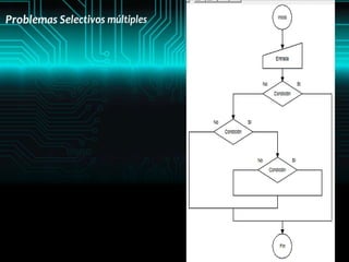Este documento presenta una introducción a los algoritmos y la lógica. Explica que un algoritmo es una serie de pasos para resolver un problema específico. Describe los diferentes tipos de lenguajes algorítmicos y la metodología para resolver problemas mediante computadoras, incluyendo la definición del problema, análisis y procesamiento de datos. También cubre estructuras condicionales, diagramas de flujo y ejemplos de problemas secuenciales, condicionales y selectivos compuestos.