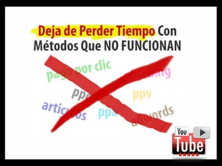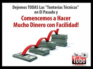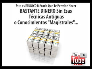 Este documento intenta vender un curso prometiendo que enseñará un método simple y seguro para ganar dinero en internet, a diferencia de otros cursos que solo han llevado al fracaso. Afirma que el 97% de las personas fracasan en ganar dinero en internet a pesar de comprar muchos cursos, y que los "gurús" quieren que sigan comprando sin éxito. Ofrece mostrar cómo otras personas están ganando cientos de dólares usando una técnica, y asegura tener un "sistema infalible" que permitirá gan