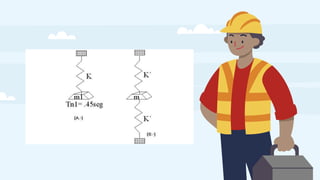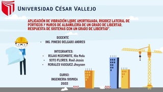 Este documento trata sobre la aplicación de vibración libre amortiguada, rigidez lateral de pórticos y muros de albañilería de un grado de libertad. Explica conceptos como vibración libre, amortiguamiento, rigidez lateral y sistemas con un grado de libertad. También analiza ejemplos numéricos y concluye enfatizando la importancia de considerar aspectos sísmicos y de amortiguamiento en la construcción peruana debido al alto riesgo sísmico del país.