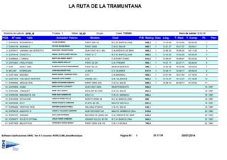 This document contains the results of the LA RUTA DE LA TRAMUNTANA sailing race. It lists the boat name, sail number, time of arrival, time difference from the first boat, name of skipper and club for the top 11 finishing boats. It also lists boats that did not finish the race, showing their sail number and skipper's name. The race was 56 miles and started at 6:00pm.