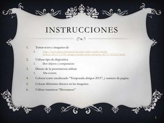Este documento presenta los principales tipos de abrigos de moda para el otoño-invierno 2013-2014, incluyendo abrigos oversize, bikers de cuero y tweed, chaquetones de pelo en colores vibrantes, parkas de pluma, y trenkas estampadas o en tonos neutros.