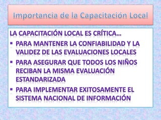 La práctica de la capacitación es importante para asegurar que todos los evaluadores reciban la misma información y comprendan los procedimientos de evaluación de la misma manera. Desviarse del texto de capacitación puede confundir a los evaluadores o resultar en que apliquen la evaluación de maneras diferentes dependiendo de la sesión de capacitación.