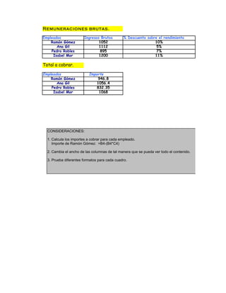 1. Calcula los importes a cobrar para cada empleado.