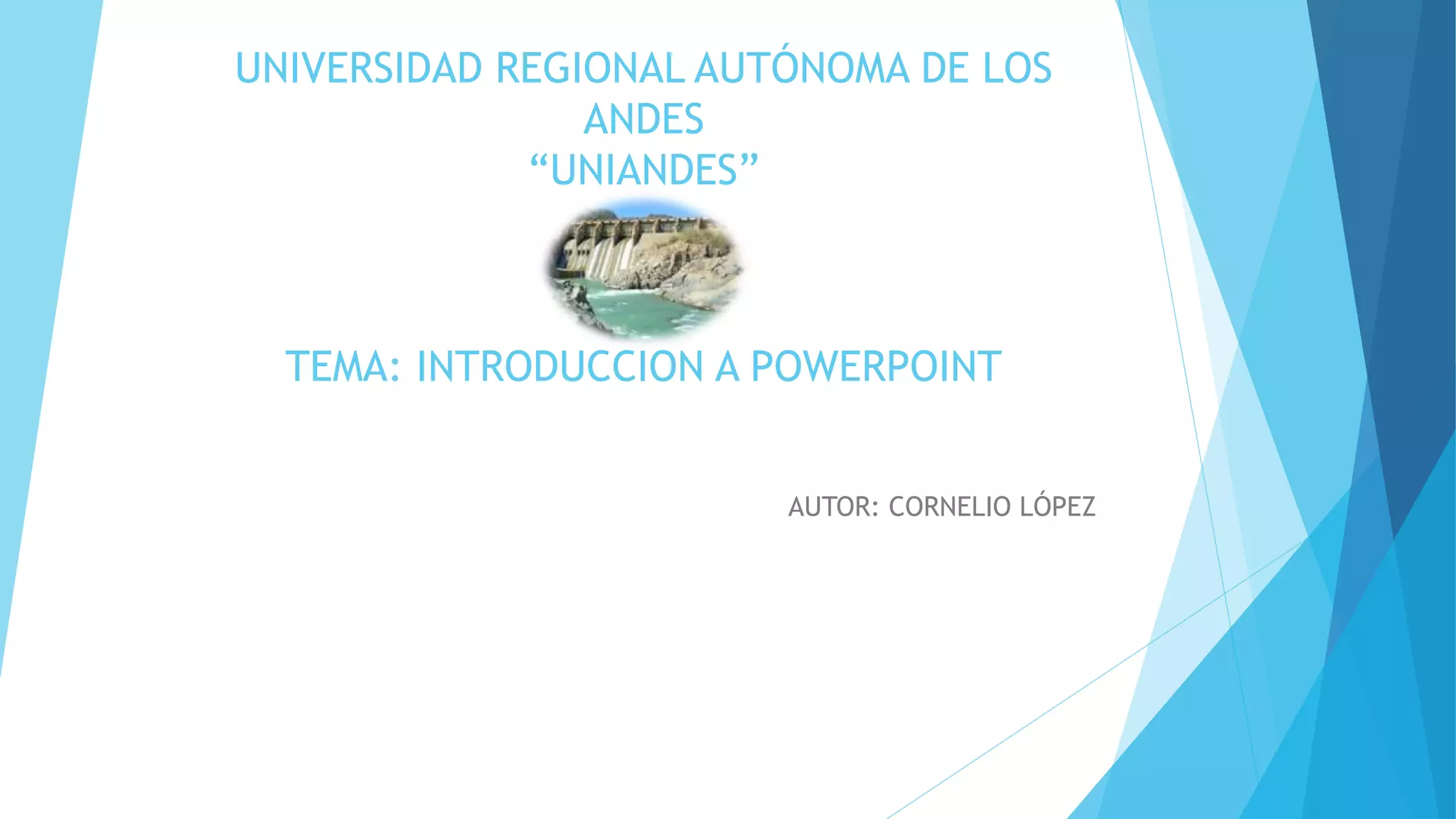 El documento presenta una introducción al uso de PowerPoint y ofrece un menú con cuatro secciones principales sobre el manejo de imágenes, tablas, gráficos y SmartArt. El autor, Cornelio López, escribió el documento para la Universidad Regional Autónoma de los Andes sobre las funciones básicas de PowerPoint.