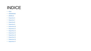 El documento presenta un índice con los colores rojo, anaranjado y amarillo, seguido de diapositivas numeradas del 6 al 17.