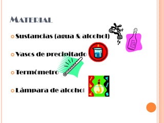 El documento describe la temperatura de ebullición del agua y cómo depende de factores como la altitud y presión atmosférica. Explica que a mayor altitud y menor presión, la temperatura de ebullición del agua es menor que los 100°C al nivel del mar, y que debido a que la ciudad donde se realiza el experimento tiene mayor altitud y menor presión que Acapulco, la temperatura a la que hierve el agua será menor que 100°C.
