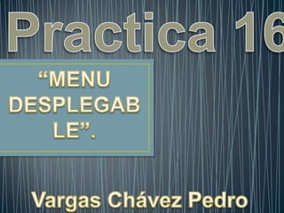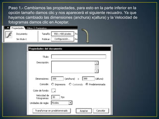 Este documento proporciona instrucciones en 23 pasos para crear un menú de botones interactivo en Adobe Flash. Los pasos incluyen importar imágenes de botones, convertirlos en símbolos, agregar fotogramas clave, crear capas para botones, texto, acciones y etiquetas, y escribir código de acción para hacer que los botones se muevan y cambien el texto cuando el usuario pase el mouse sobre ellos.