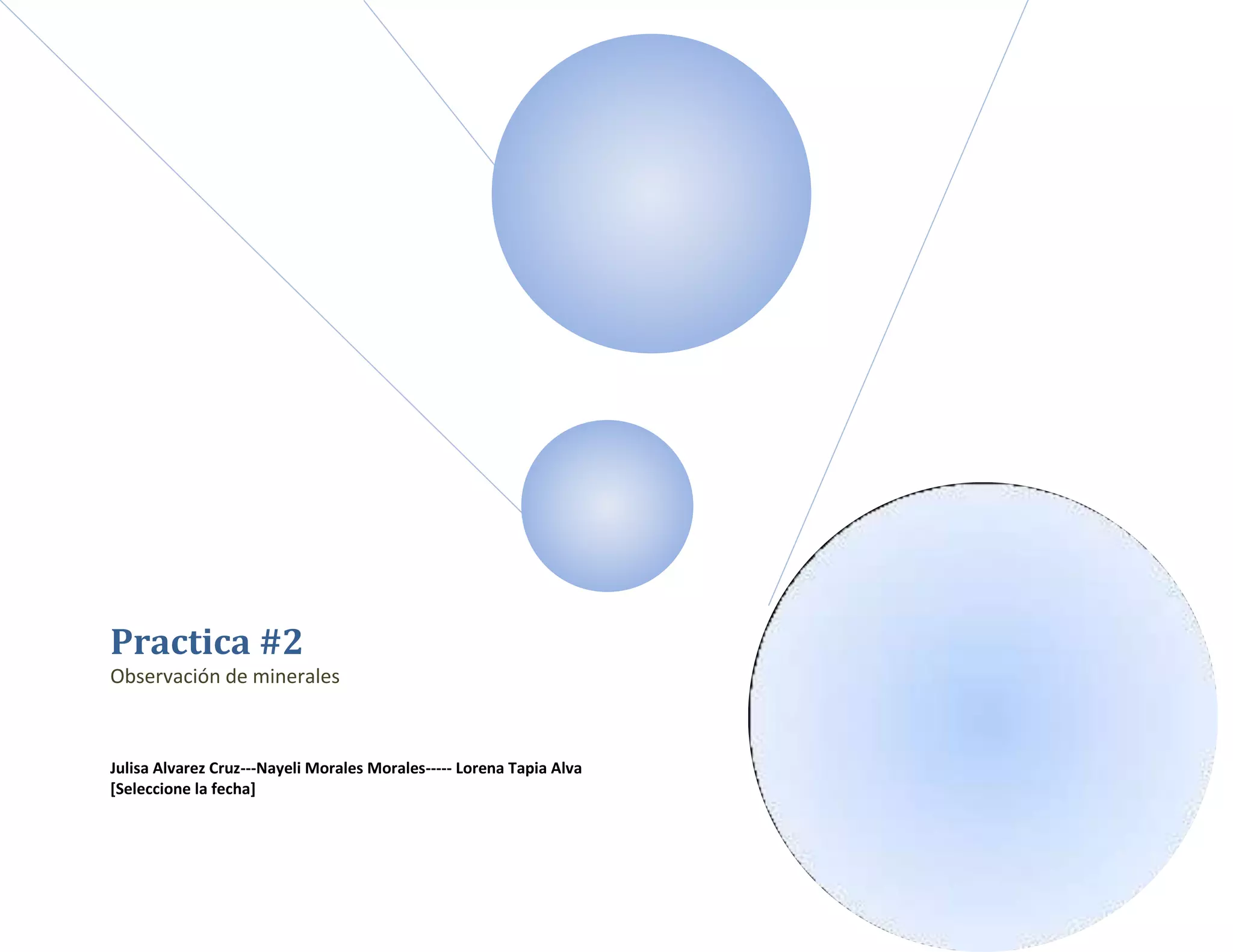 Este documento describe un procedimiento para observar minerales en una muestra de suelo. Se agrega agua oxigenada y ácido clorhúdrico a la muestra para eliminar la materia orgánica. Luego se observa la muestra restante bajo un microscopio, donde se pueden ver minerales como cuarzo, feldespato, moscovita y otros. La conclusión es que este proceso permite separar los componentes orgánicos e inorgánicos del suelo y diferenciar sales u otros materiales.