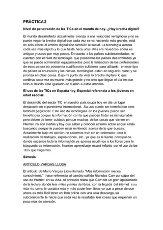 Nivel de penetraciónde las TICs en el mundo de hoy. ¿Hay brecha digital?