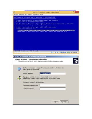 El documento propone dividir un disco duro en tres particiones: una unidad C de 50GB para el sistema operativo, una partición de 100GB para videos y otra de 100GB para datos generales.