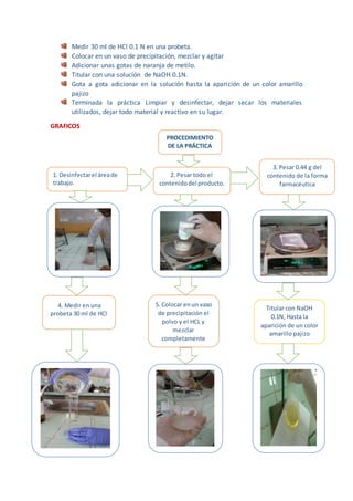 La práctica consistió en determinar el porcentaje de óxido de zinc presente en un talco fungicida mediante volumetría. Se obtuvo un porcentaje del 102.07%, el cual está dentro de los parámetros de control de calidad del 90-110%. Por lo tanto, el producto cumple con los estándares de calidad requeridos. Adicionalmente, se propusieron tres problemas relacionados con la valoración de soluciones mediante cálculos.