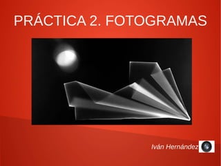 Este documento explica los fotogramas, que son imágenes creadas colocando objetos directamente sobre papel fotosensible y exponiéndolos a la luz. Describe tres tipos de fotogramas y proporciona instrucciones detalladas sobre cómo crearlos, incluidos los materiales necesarios y los pasos del proceso. También incluye ejemplos de escalas de grises, fotogramas blanco sobre negro y negro sobre blanco creados por el autor siguiendo estas técnicas.