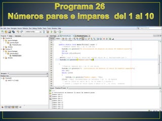 Este documento presenta la práctica 26-28 de Angel Fernando Navarro Ocampo del 3o AM de Programación en CETIS 109. La práctica involucra el desarrollo de software de aplicación utilizando programación orientada a objetos en NetBeans.