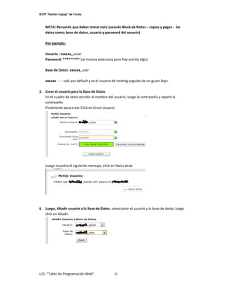 2. Crear el usuario con un nombre, contraseña y asignarlo a la base de datos creada anteriormente.