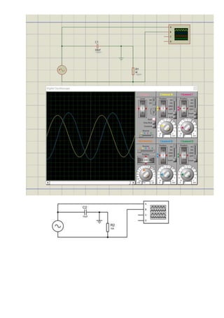 Este documento presenta las instrucciones para realizar una práctica de medición en un circuito RC con un alternador. Se pide construir el circuito en Proteus y realizar mediciones de voltaje, corriente e impedancia con osciloscopio y multímetros a diferentes frecuencias. También se pide representar las respuestas en frecuencia del voltaje en el condensador y analizar el efecto de intercambiar la posición de la resistencia y el condensador.