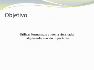 Este documento describe cómo insertar formas en un documento para atraer la atención hacia información importante. Indica que se debe hacer clic en la pestaña Insertar, seleccionar Ilustraciones, y luego elegir una forma deseada de la sección correspondiente en el menú desplegable Formas.