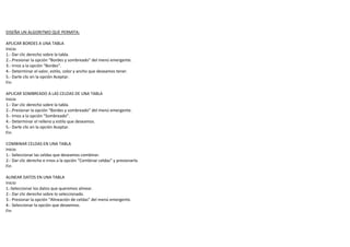 Este documento presenta una lista de calificaciones de varios alumnos en diferentes materias, así como el promedio general de cada alumno. En la tabla se muestran los nombres de los alumnos, sus calificaciones en inglés, matemáticas, taller de lectura y redacción, informática, física, química, ciencias sociales e historia, y el promedio general de cada uno. Adicionalmente, se incluye el promedio por materia.