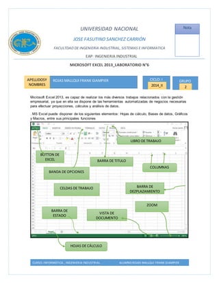 Este documento presenta información sobre el uso de Microsoft Excel 2013 para realizar tareas de gestión empresarial como proyecciones, cálculos y análisis de datos. Explica conceptos básicos como hojas de cálculo, celdas, fórmulas y funciones, y ofrece instrucciones para crear una tabla con ventas y calcular promedios, totales y un total general.