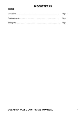 Este documento describe las disqueteras, que son dispositivos que leen y escriben en disquetes de almacenamiento extraíble. Explica que las disqueteras tienen motores que rotan el disquete a velocidad controlada mientras que otro motor controla un cabezal magnético que lee y escribe la información magnetizando puntos en el disco rotatorio. También detalla las diferencias entre las unidades de disquetes de 5 1/4 pulgadas y 3 1/2 pulgadas en cómo se insertan y retiran los disquetes.