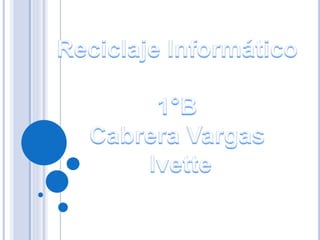 Este documento discute las opciones para deshacerse de material informático obsoleto, incluyendo tirarlo en la basura o en un contenedor. La mejor opción es el reciclaje, ya que muchos componentes contienen metales tóxicos como plomo, cadmio y mercurio que no deben desecharse sin tratar. En España, en 2005 se generaron 20,000 toneladas de basura electrónica, pero el 90% terminó en vertederos inadecuados. Los fabricantes están obligados a reciclar los aparatos electrónicos y recog