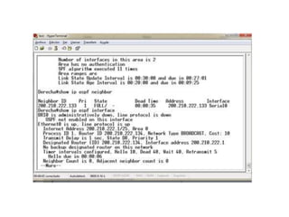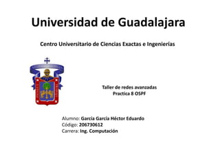 Este documento describe una práctica de laboratorio sobre el protocolo OSPF. El objetivo de la práctica era revisar el funcionamiento de OSPF configurando una topología de red propuesta y verificando la conectividad, rutas, vecinos OSPF e interfaces. El estudiante logró implementar con éxito la topología, comprobar la conectividad, y verificar el estado y configuración de OSPF.