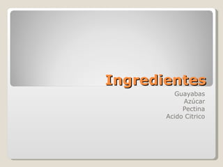 El documento describe el proceso de producción de mermelada de guayaba. Se seleccionan y lavan las guayabas, luego se cortan y hierven. La mezcla se licua, tamiza para eliminar las semillas, y se le agrega azúcar hasta obtener una consistencia pastosa. Finalmente, la mermelada se envasa y etiqueta.