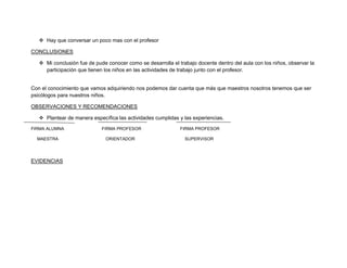La memoria de práctica describe las actividades realizadas por un estudiante durante su primera visita a una escuela, incluyendo observar a los niños y al profesor, participar en clases, y compartir experiencias. También incluye un organigrama de la escuela y recomendaciones para mejorar la participación del estudiante.