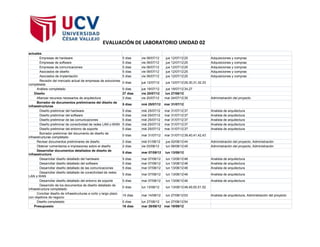Este documento presenta un plan de 141 días para el desarrollo de infraestructuras que incluye las fases de ámbito, análisis, diseño, presupuesto. La fase de análisis dura 30 días e incluye la revisión de la infraestructura actual y la identificación de áreas de mejora. La fase de diseño de 27 días produce documentos preliminares y detallados. La fase de presupuesto de 16 días desarrolla un presupuesto basado en los documentos detallados de diseño.