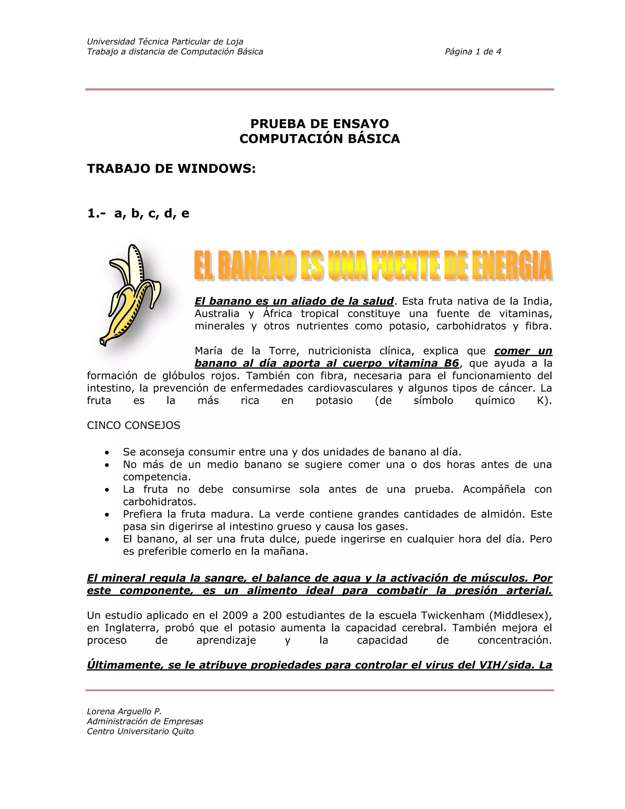 El banano es una fruta rica en vitaminas, minerales y fibra que proporciona varios beneficios para la salud. Es recomendable consumir una o dos unidades al día, aunque los deportistas deben acondicionar primero su cuerpo antes de incluirlo en su dieta. El banano también puede ayudar a controlar el virus del VIH/sida según un reciente estudio.