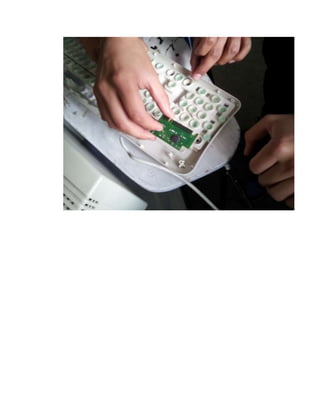 El documento proporciona instrucciones para limpiar un teclado. Primero se debe desarmar el teclado y separar la carcasa superior. Luego se lavan las carcasas y teclas. Después se limpian las láminas de circuitos y se revisa la placa electrónica, colocando las plaquetas sobre los chupones y atornillando la carcasa inferior. Finalmente se prueba el funcionamiento de cada tecla.