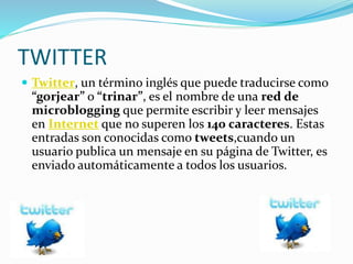 Twitter es una red social de microblogging que permite a los usuarios publicar y leer mensajes cortos llamados tweets, los cuales no pueden exceder los 140 caracteres. Los tweets se comparten automáticamente con todos los seguidores de un usuario cuando este publica un nuevo mensaje.